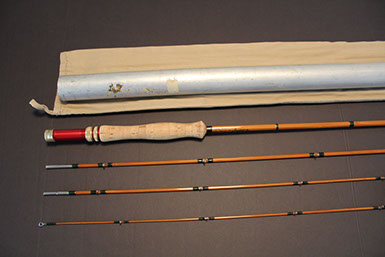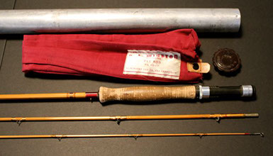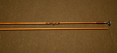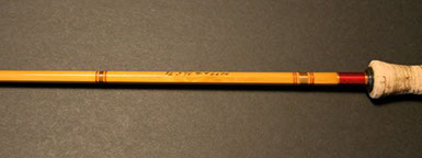 This rod came from the Scott Zieske collection (tube still carries his labeling with name and address) and was beautifully restored by the late Jim Clarkson. A very stunning rod that matches its good looks in the casting department: it threw a 5wt line (Wulff TT5) superlatively at all distances I covered with it (10-75 ft.)!