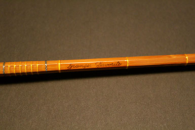 Favorite stamped on butt-Granger “Favorite” wraps (variegated main wraps trimmed yellow with yellow intermediates) over dark ammonia treated cane-Varnished finish-Comes with Original Bag & Tube (tube has partial label)