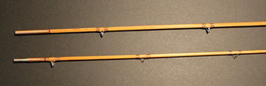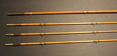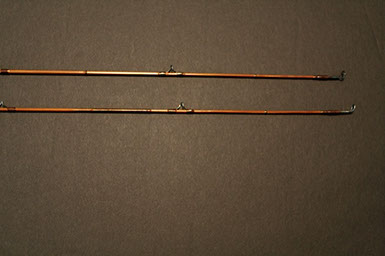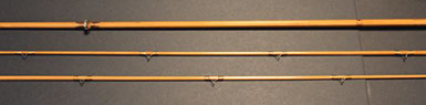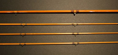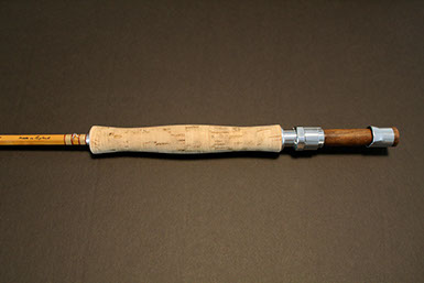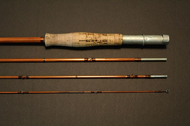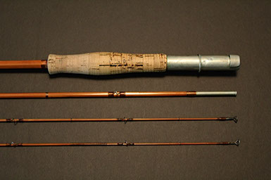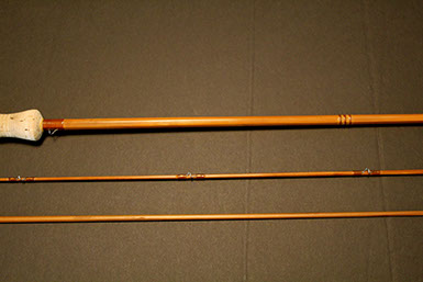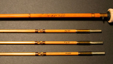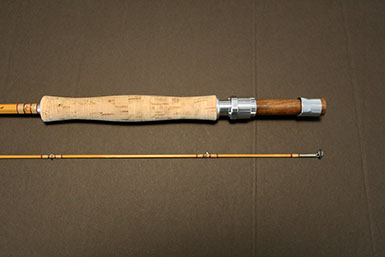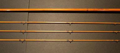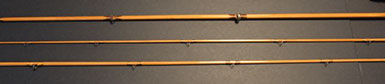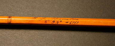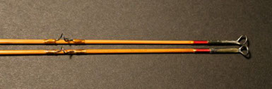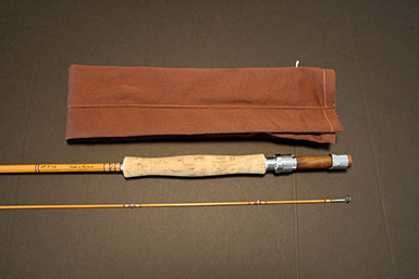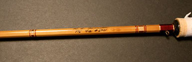 This rod came from the Scott Zieske collection (tube still carries his labeling with name and address) and was beautifully restored by the late Jim Clarkson. A very stunning rod that matches its good looks in the casting department: it threw a 5wt line (Wulff TT5) superlatively at all distances I covered with it (10-75 ft.)!