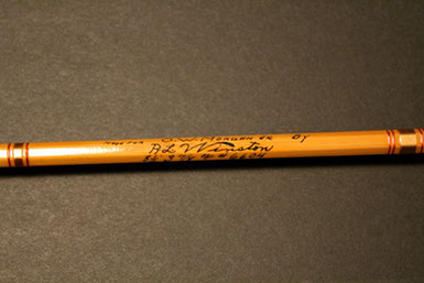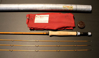 Aluminum & Bakelite down locking reel seat-Half wells grip in very nice shape (no chips)-Black Bakelite winding check-Flap ring hook keeper-Wrapped over Winston Duronze ferrules-Butt is scripted with: R.L. Winston and 8 ½’ 4oz #6901-Serial #6901 on tip as well-3 stripping guides on butt, 1 more on tip along with 8 snakes and the tip top-Wraps are gold trimmed in red and correct for a Winston made in this period-Comes in a replacement bag & tube-Condition of this rod is Excellent Restored (It was beautifully restored two to three years ago and has not been fished since!).