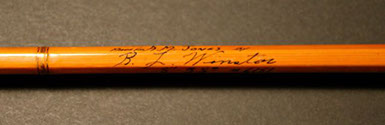 Loscott in the Harrison St. Shop for a Mr. A.M. Jones of San Francisco, and was originally built as a one-tip rod. Glenn Brackett of Sweetgrass Rods made the other two tips, and as most know, was a former owner of Winston. Steve Blake of Oregon finished them out. I want to note that for whatever the reason these tips were put together one ¼ of an inch shorter than the original. With that being said: To my way of thinking, the ability to have two extra tips to fish with or as backups, the ¼ inch is not any big deal. I also wanted to note that the cane on the two newer tips is lighter in color as to be expected.