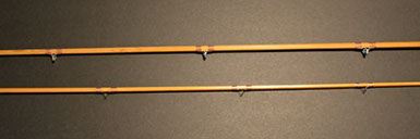 This one weighed out at 5.6 oz on my postal scale, which is on the light side for a solid built 9 ½ footer! My guess is: this one is cedar cored at least in the butt section and most likely the mid as well, keeping the weight down for the 9 ½’ competition class…